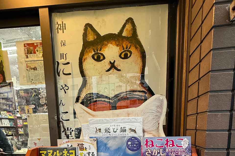 Nyankodō sits at the center of Jinbōchō, Tokyo’s historic book district. Emerging from the Tokyo Metro, I was carried upward in a steady current of commuters only to find the pace slacken almost immediately at street level. The rush dissolved into passersby lingering over sidewalk carts and narrow storefronts spilling over with used books. Browsers paused midstep to leaf through books, from manga to medical textbooks. Today, some 160 bookstores still cluster here, many centering on a particular subject. Nyankodō’s happens to be cats.